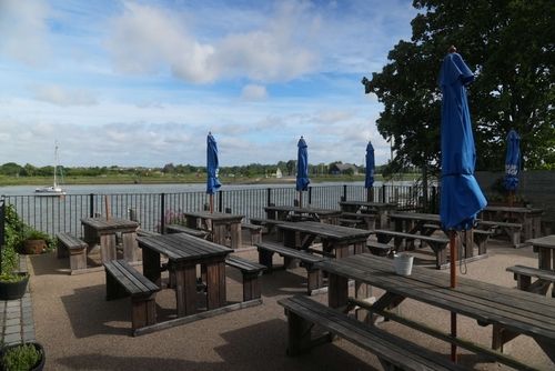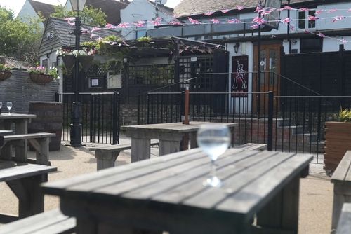 The beer garden is on the river edge and affords the best views on the river, with stunning sunsets over the crouch a sight not to be missed, the garden area has bench style seating of different sizes to support larger or smaller groups, and the whole area is fenced in steel railings for safety of dogs and children on the river edge.